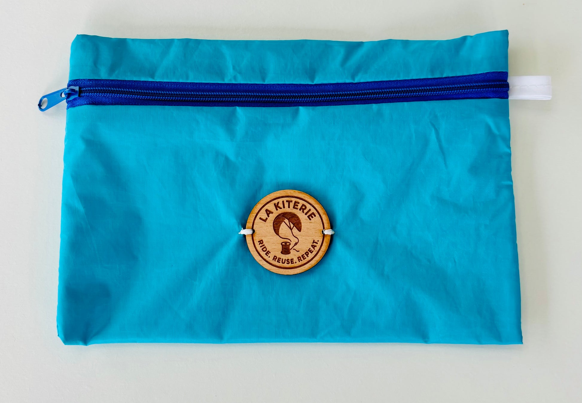Les pochettes Fontenelles sont toutes fabriquées à partir d'ailes recyclées, doublée de coton, d'un Zip coloré, logo gravé sur bois pour une dimension de 21 cm x 14 cm.