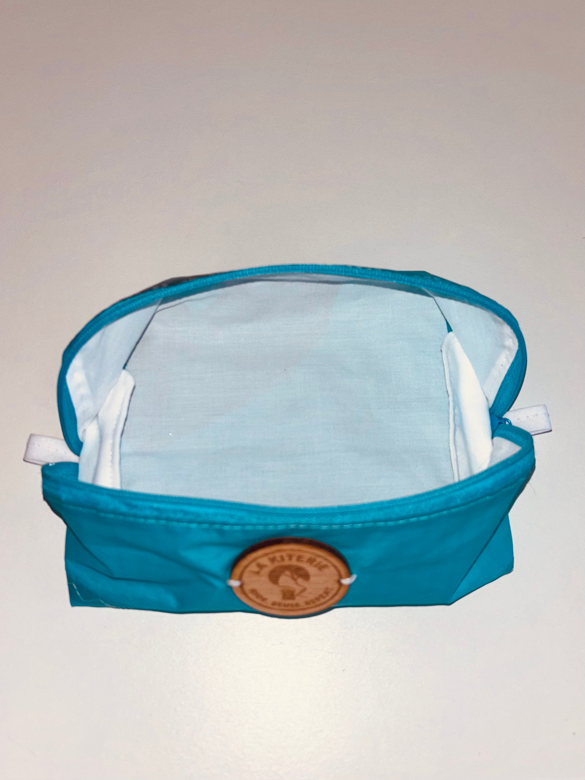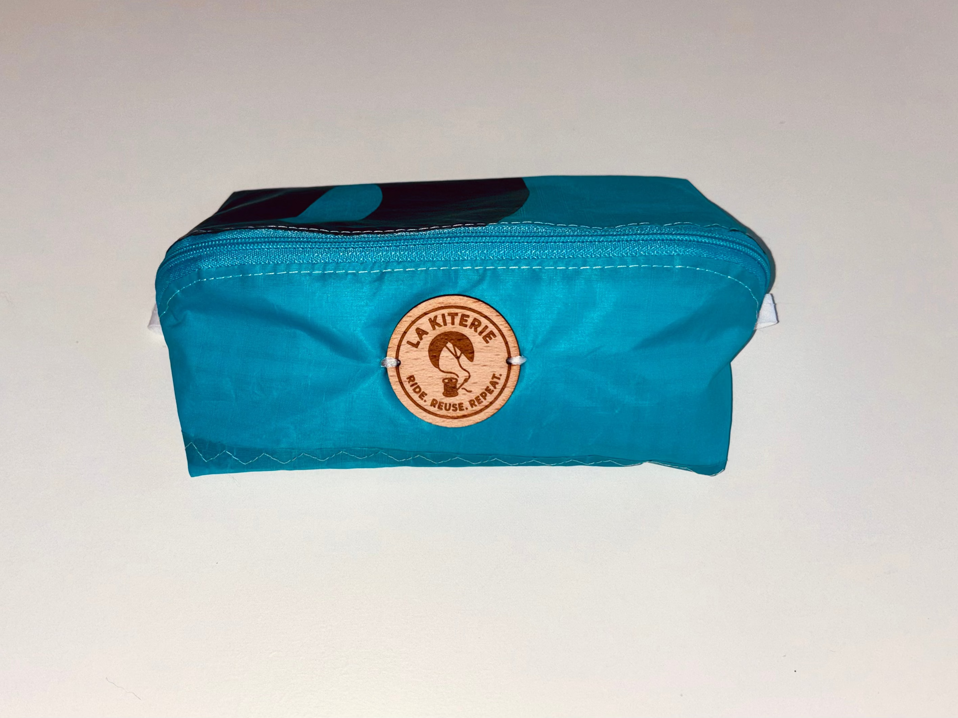 Les Trousses Matelot sont tous fabriqués à partir d'ailes recyclées, doublé de coton, d'un Zip coloré ainsi que du logo gravé sur bois.
