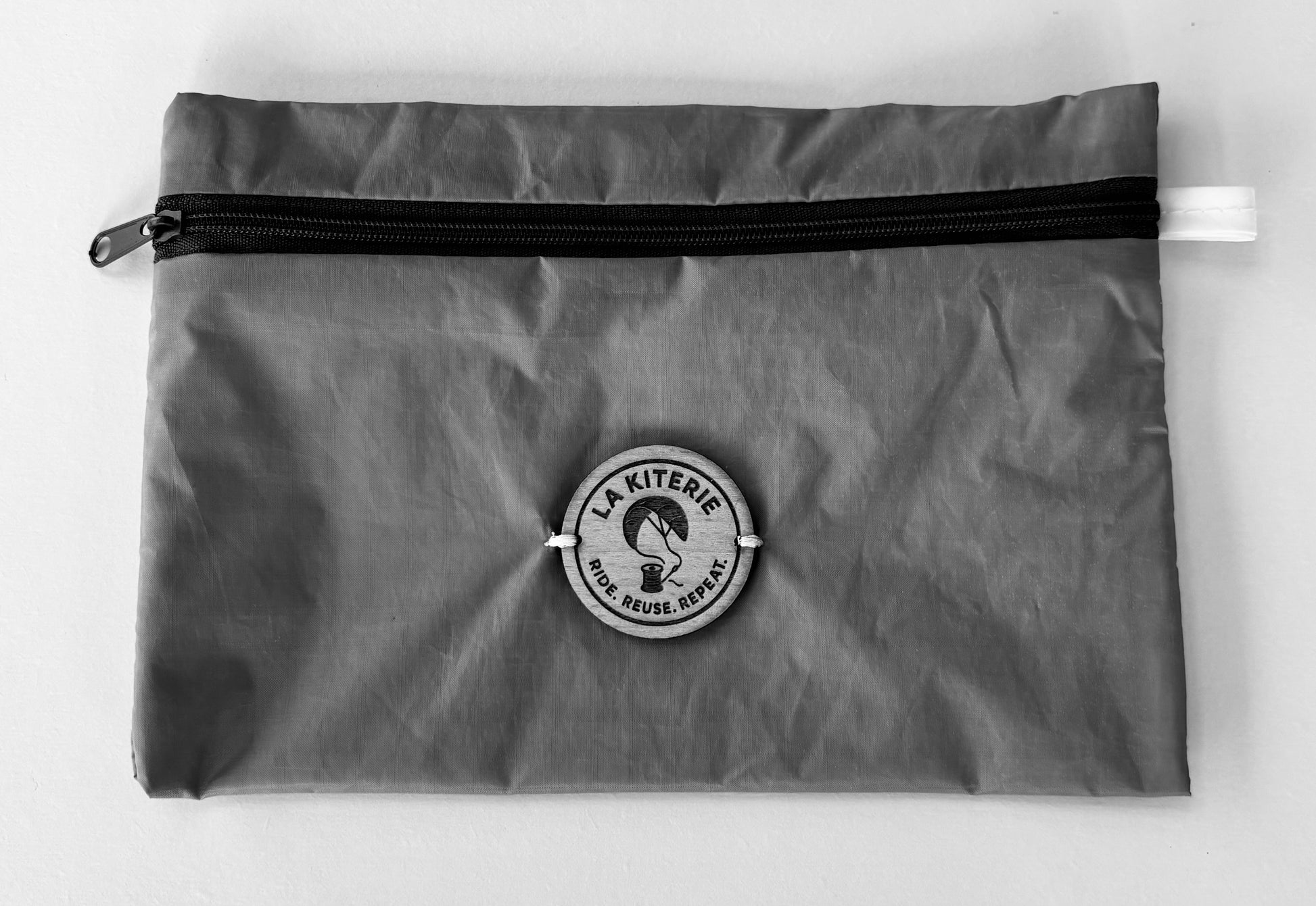 Les pochettes Fontenelles sont toutes fabriquées à partir d'ailes recyclées, doublée de coton, d'un Zip coloré, logo gravé sur bois pour une dimension de 21 cm x 14 cm.